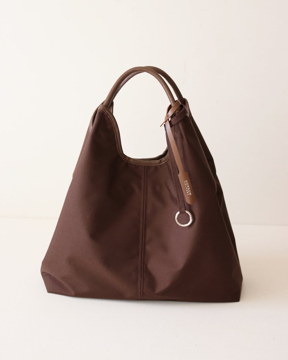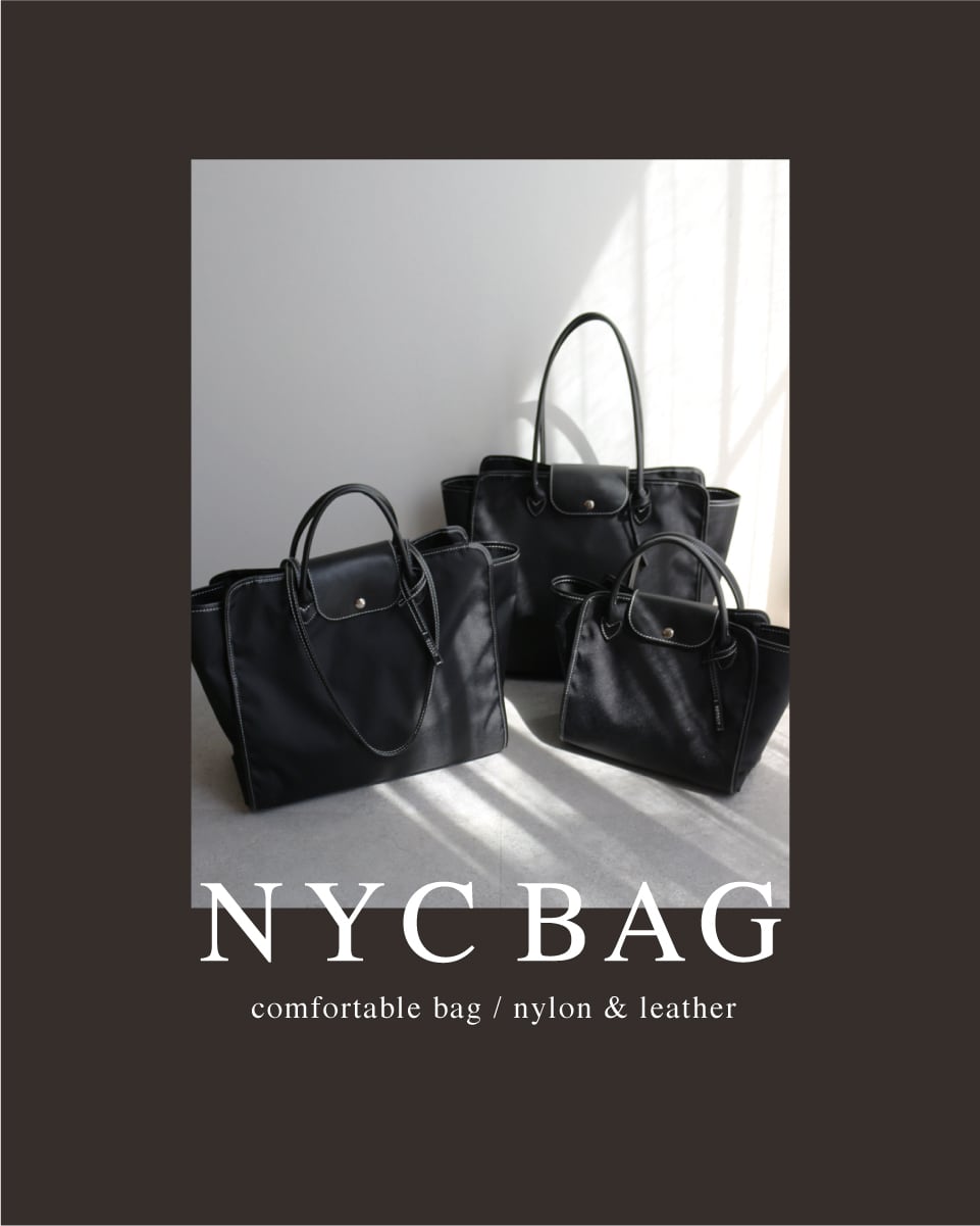 ●お届け日 2月10日より順次発送予定 . NYC BAG/ エヌワイシーバッグ 機能性と実用性、それに可愛らしさをプラスして生まれたNYC bagシリーズ。 使うシーンや用途、重さ、サイズ感 オンオフ兼用できるかなど バックを選ぶ時に気になるポイントは様々。 その中でもシーンやコーディネートを選ばない使い勝手の良さは大切なポイントではないでしょうか。 今回morrowからご提案するNYC bagは 日常の中で活躍するバックにフォーカスしました。 ソフトでしなやかな素材感のボディに本革を合わせ、シンプルな見た目の中にもしっかりと morrowらしい大人のカジュアル感を大切にしたデザインです。 すっきりとしたスクエアなフォルムは知的な印象。きれい目なコーディネートはもちろん カジュアルなコーディネートに合わせても 程よくきれい目に馴染んでくれるデザイン。 カジュアルになりがちな素材感のバックを レザーとのコンビネーションによって落ち着いた印象に仕上げました。 バックの素材に選んだのは ナイロンの7倍もの強度を持つ繊維コーデュラを 高密度に織ったコーデュラファブリック。 耐久性、頑丈さ、万能さの代名詞となっている高機能素材で摩擦に強く 毎日使うことが多く、擦れが起こりやすいお仕事バックにも最適です。 綺麗さが長持ちする 耐久性のある素材であることに加え 生地には撥水加工 裏面は防水加工が施されているので 雨の日や、突然の雨にも対応してくれる 活躍シーンの多いバックです。 NYC toteやNYC 2way toteはパソコンが入るサイズ感でお仕事用として。 また学校関連の外出などで A4サイズの資料を入れたい時 外出先でお買い物の予定がある時 小旅行などのレジャーシーンで マザー/ファーザーバックとしてなど お勧めの使うシーンは様々。 NYC mini bagは日常使いにはもちろん 週末のお出かけシーンや 斜め掛けして両手を開けて持ちたい方に特にお勧めです。 中側両面に付いた合計4つのポケットに ハンカチやポーチ、カードケースや鍵などの小物達をすっきりと収納出来るので 使いたい時にさっと出し入れ出来ます。 ボトルホルダーは傘立てとしても。 バックの中で迷子になった小物を探す事など良くあると思いますが ストレスなく、気持ちよく使えるのも NYC bagのお勧めポイントのひとつです。 そして更にお伝えしたいのがその軽さ。 特に大きなサイズのバックは面積が大きい分重くなりがちですが このNYC bagは手に取るとふわっと軽く持ち上がるほどの想像以上の軽さが魅力。 沢山の荷物を入れるのにバック自体が重いと おのずと使う回数も減ってしまいます。 バック自体が軽いのは 日常バックとしてお勧めするのに大切なポイントのひとつです。 本体:ナイロン、ポリエステル、牛革 ベルト・付属:牛革 【サイズ】 W340~450 × H315 x D120 mm 【生産国】 日本 【キャンセル・返品について】 申し訳ございませんが、お客様のご都合によるキャンセル・返品は 受け付けておりません。