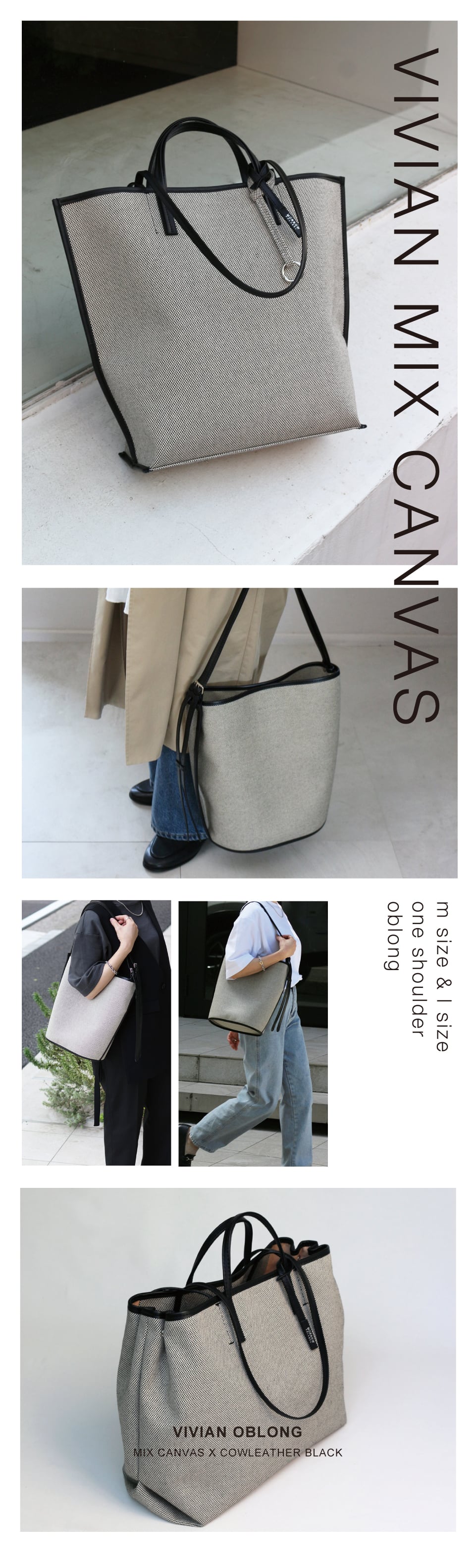 ●お届け日 ご注文完了後 5~10営業日にて発送予定 ※土日、休日を除く . VIVIAN L MIX / ヴィヴィアン L ■デザイン すっきりとした四角いフォルムでお仕事にもプライベートにも幅広い場面に合わせやすいシンプルなデザイン。 パソコンやA4書類がすっぽりと入るサイズ感で、重い書類を入れても安心の取り外し可能な底板付き。 1泊旅行や荷物の多くなるレジャーなどにも最適です。 内側には小物整理に大活躍してくれるポケットが大小2個ずつ。オープンポケットは使いたい時にさっと出し入れしやすく小物迷子を防止してストレスなくお使いいただけます。 手持ちと肩掛け両方に対応出来る2WAY仕様です。 マグネット付きの蓋で目隠しも万全です。 ■素材 キャンバス生地は張りのあるさらりとした生地感で、すっきりとした印象です。 カジュアルな雰囲気だけでなく上品な印象も与えてくれるので オンにもオフにも合わせやすいのがポイントです。 重くなりがちは大きめバックですが、VIVIANシリーズはとても軽量。使い心地抜群です。 【サイズ】 ■本体:約 横幅32~43 ×高さ36.5×マチ13.5cm ■持ち手:約28cm ■ショルダー:約61cm ■重量:キャンバス素材 / 約570g 【対応しているもの】 ■A4サイズ ■パソコン画面 15.6インチ ■ペットボトル 1000ml縦約3~4本 ■長財布 ■折り畳み傘 【仕様】 ■フタ(マグネット付き) ■内ポケット(オープン)4(大2、小2) ■底板(取り外し可能) 【素材】 本体:綿キャンバス、牛革 付属:牛革 インナー:ポリエステル 【生産国】 日本 【キャンセル・返品について】 申し訳ございませんが、お客様のご都合によるキャンセル・返品は 受け付けておりません。