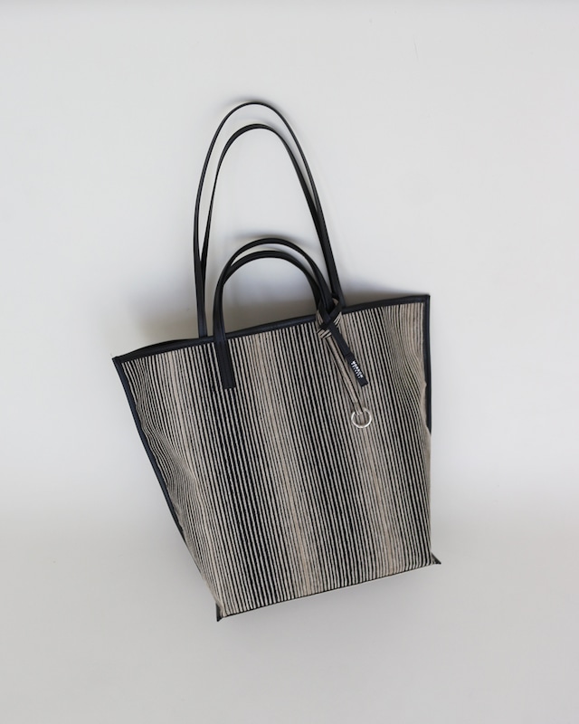 ●お届け日 ご注文完了後 5~10営業日にて発送予定 ※土日、休日を除く . 人気のVIVIANシリーズに、深みのある質感が特徴のマルチストライプ柄が追加されました!! VIVIAN L MIX / ヴィヴィアン L ■デザイン すっきりとした四角いフォルムでお仕事にもプライベートにも幅広い場面に合わせやすいシンプルなデザイン。 パソコンやA4書類がすっぽりと入るサイズ感で、重い書類を入れても安心の取り外し可能な底板付き。 1泊旅行や荷物の多くなるレジャーなどにも最適です。 内側には小物整理に大活躍してくれるポケットが大小2個ずつ。オープンポケットは使いたい時にさっと出し入れしやすく小物迷子を防止してストレスなくお使いいただけます。 手持ちと肩掛け両方に対応出来る2WAY仕様です。 マグネット付きの蓋で目隠しも万全です。 ■素材 キャンバス生地は張りのあるさらりとした生地感で、すっきりとした印象です。 カジュアルな雰囲気だけでなく上品な印象も与えてくれるので オンにもオフにも合わせやすいのがポイントです。 重くなりがちは大きめバックですが、VIVIANシリーズはとても軽量。使い心地抜群です。 【サイズ】 ■本体:約 横幅32~43 ×高さ36.5×マチ13.5cm ■持ち手:約28cm ■ショルダー:約61cm ■重量:キャンバス素材 / 約570g 【対応しているもの】 ■A4サイズ ■パソコン画面 15.6インチ ■ペットボトル 1000ml縦約3~4本 ■長財布 ■折り畳み傘 【仕様】 ■フタ(マグネット付き) ■内ポケット(オープン)4(大2、小2) ■底板(取り外し可能) 【素材】 本体:綿キャンバス、牛革 付属:牛革 インナー:ポリエステル 【生産国】 日本 【キャンセル・返品について】 申し訳ございませんが、お客様のご都合によるキャンセル・返品は 受け付けておりません。