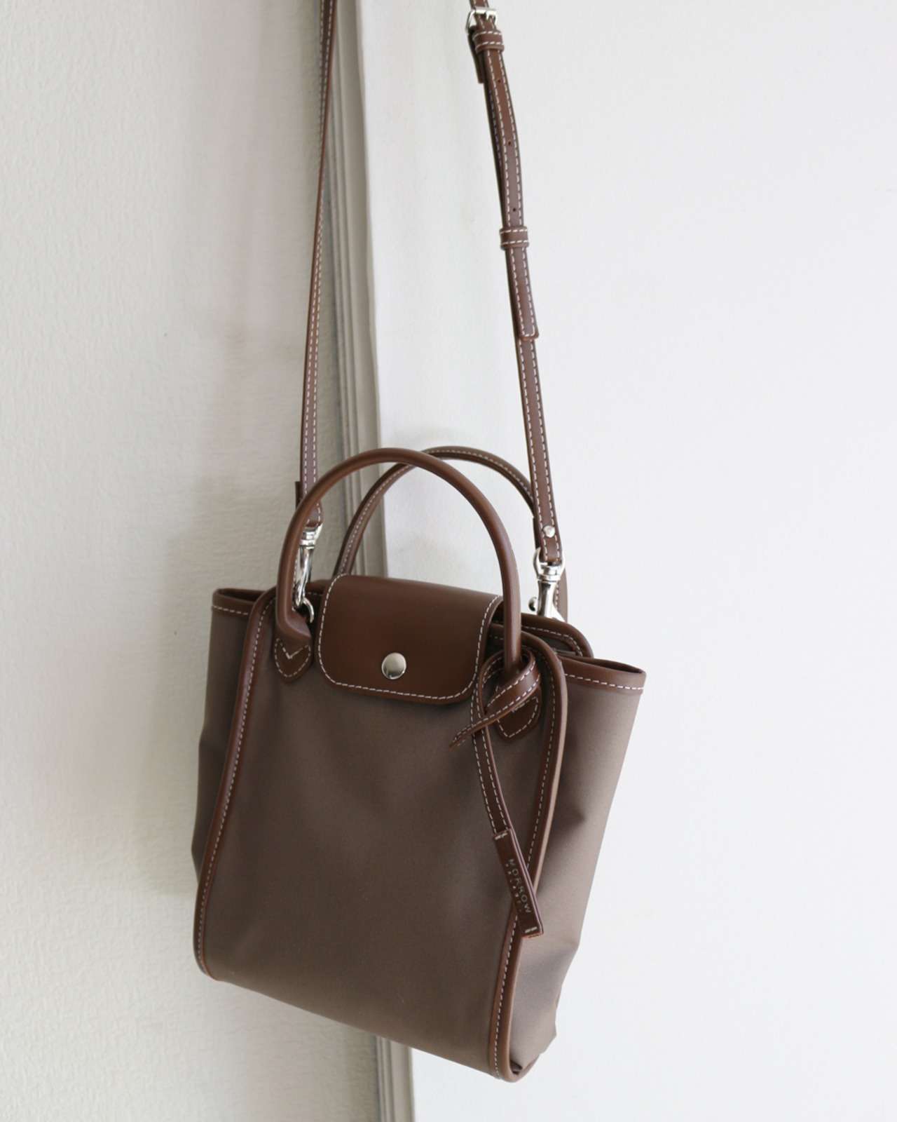 ショルダーバックは肩かけや斜めがけをすることで両手が使えるのが魅力ですが、ハンドルも付いていてあらゆるシーンに対応してくれます。