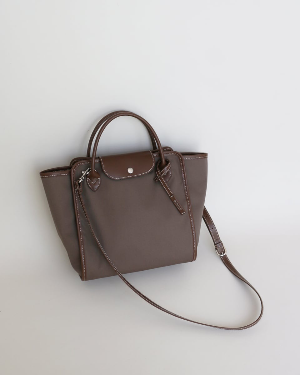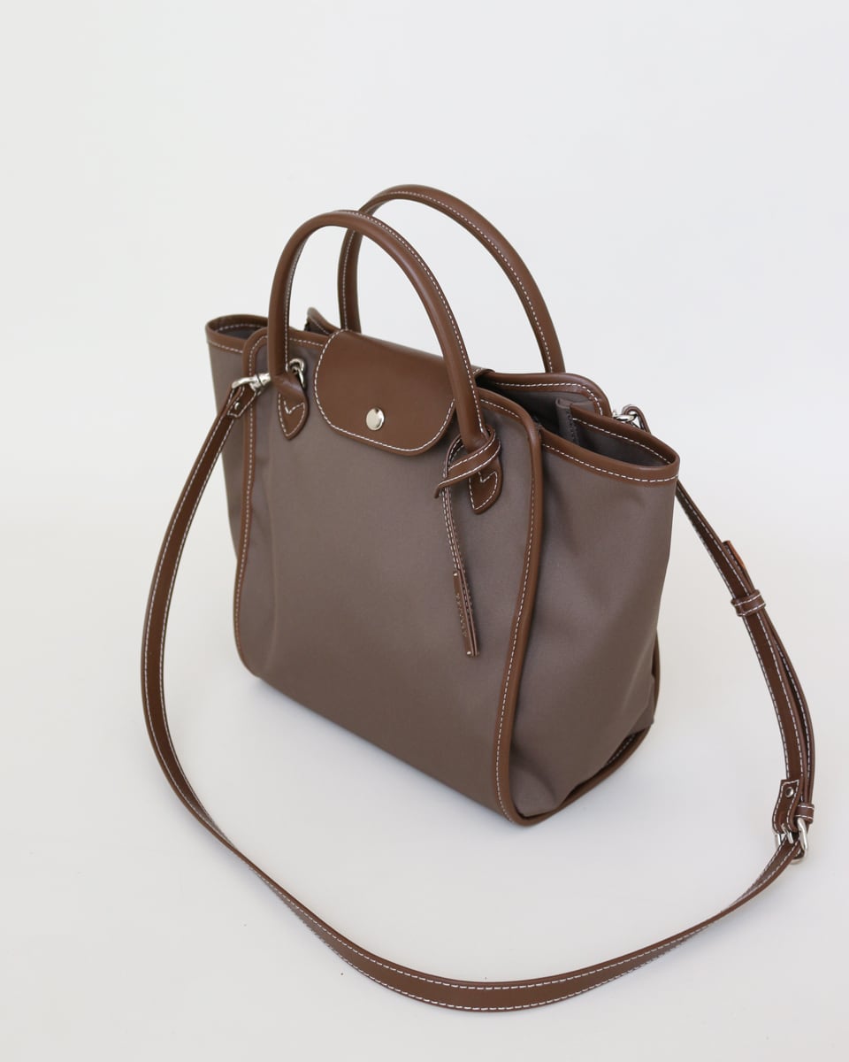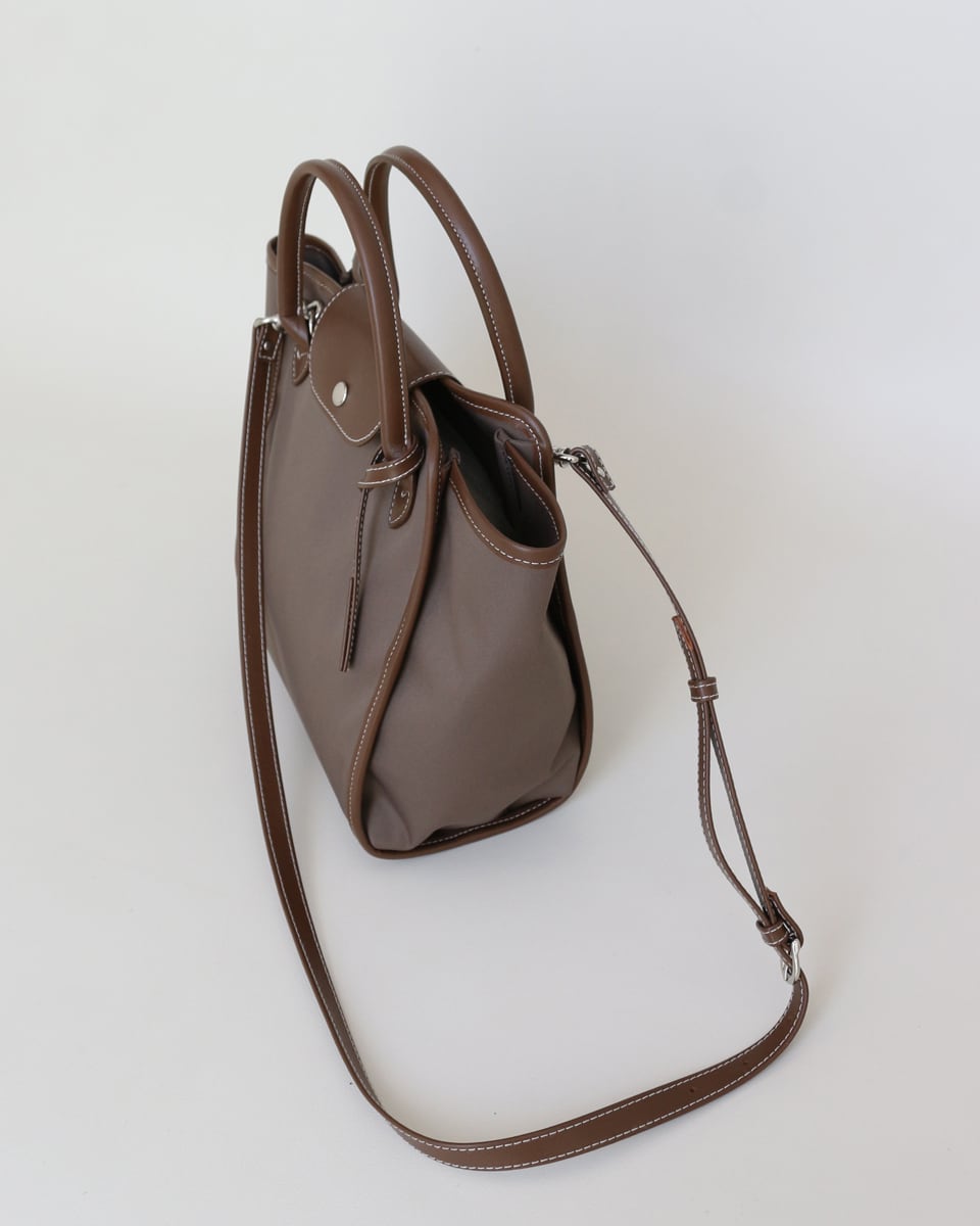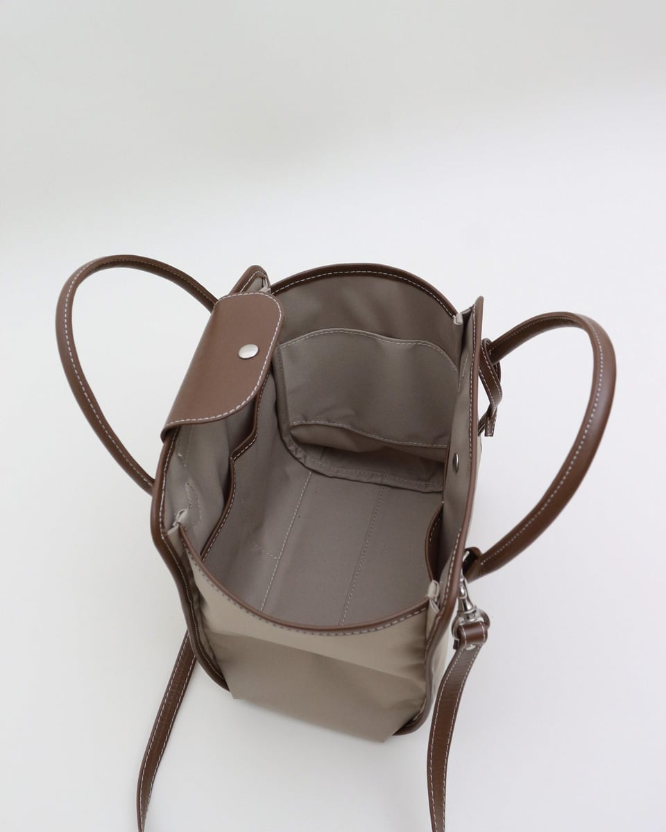 ソフトでしなやかな素材感のボディに本革を合わせ、シンプルな見た目の中にもしっかりと