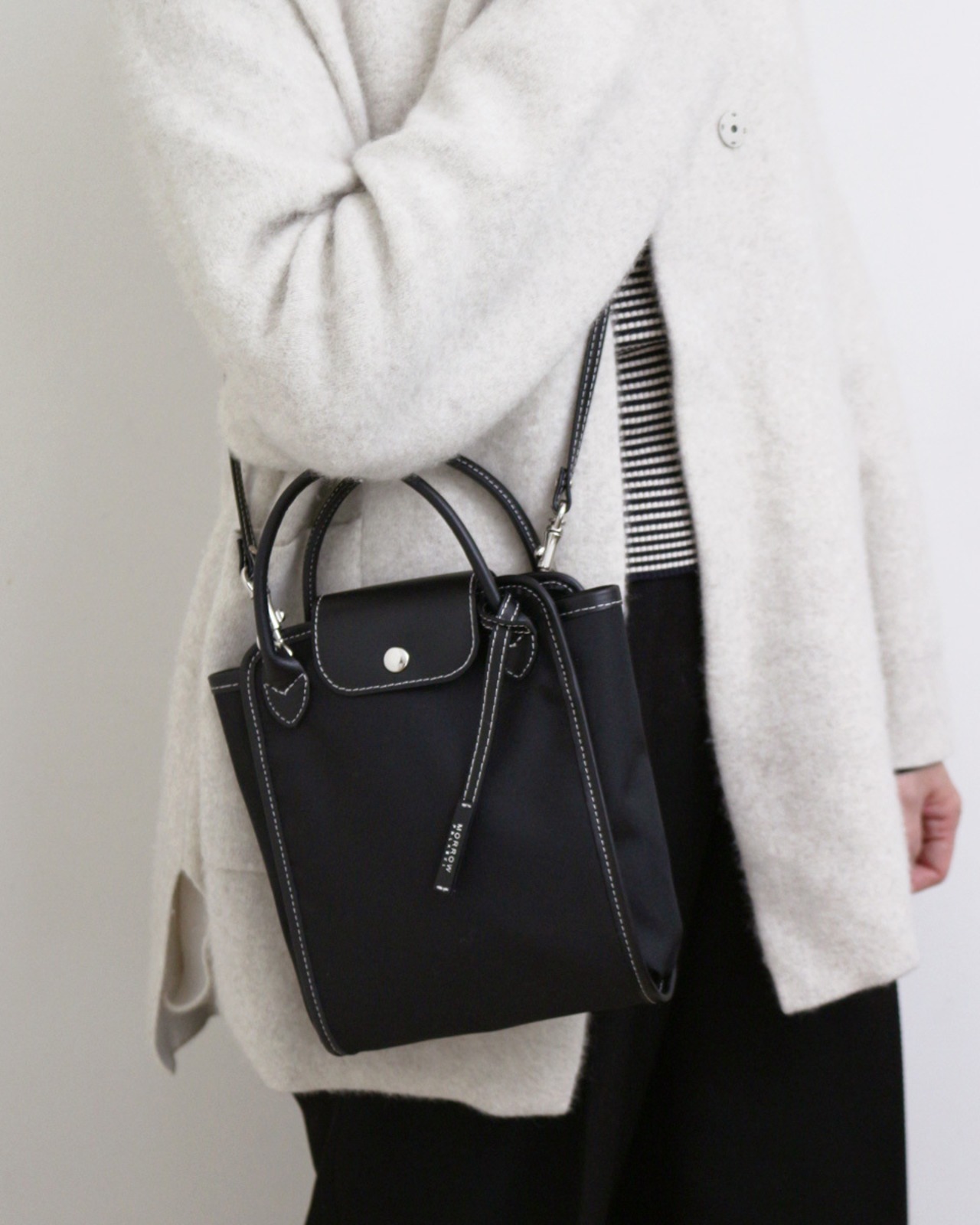 ショルダーバックは肩かけや斜めがけをすることで両手が使えるのが魅力ですが、ハンドルも付いていてあらゆるシーンに対応してくれます。