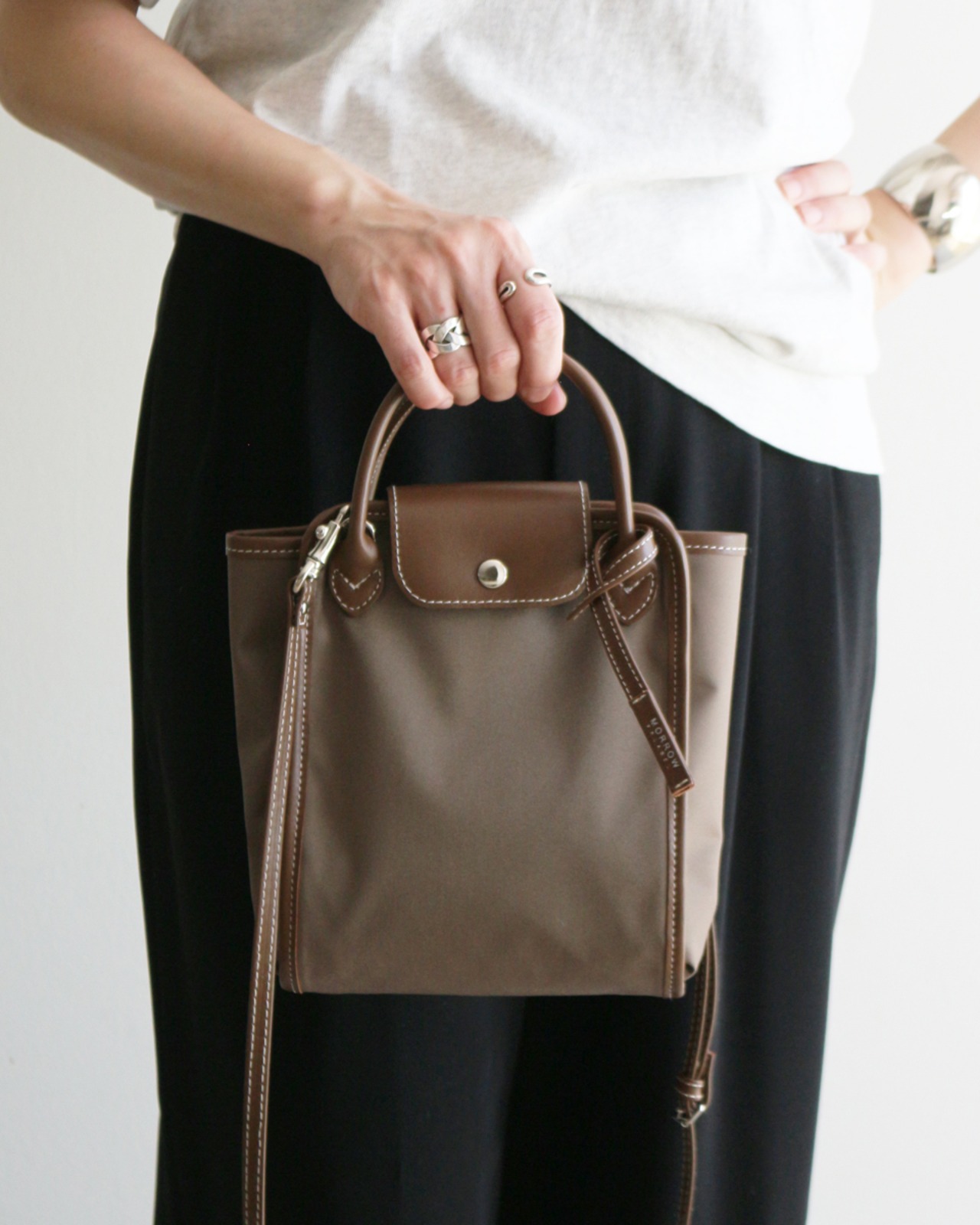 ソフトでしなやかな素材感のボディに本革を合わせ、シンプルな見た目の中にも大人のカジュアル感を大切にしたデザインです。
