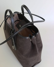 レザーとスエード調素材のコンビネーションは、上品で女性らしい雰囲気を演出してくれます。