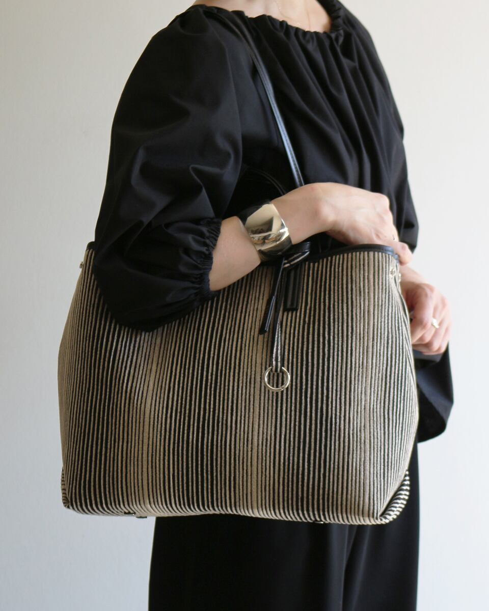 しっかりとしたマチ幅があり、パソコンやA4書類が入るサイズ感。