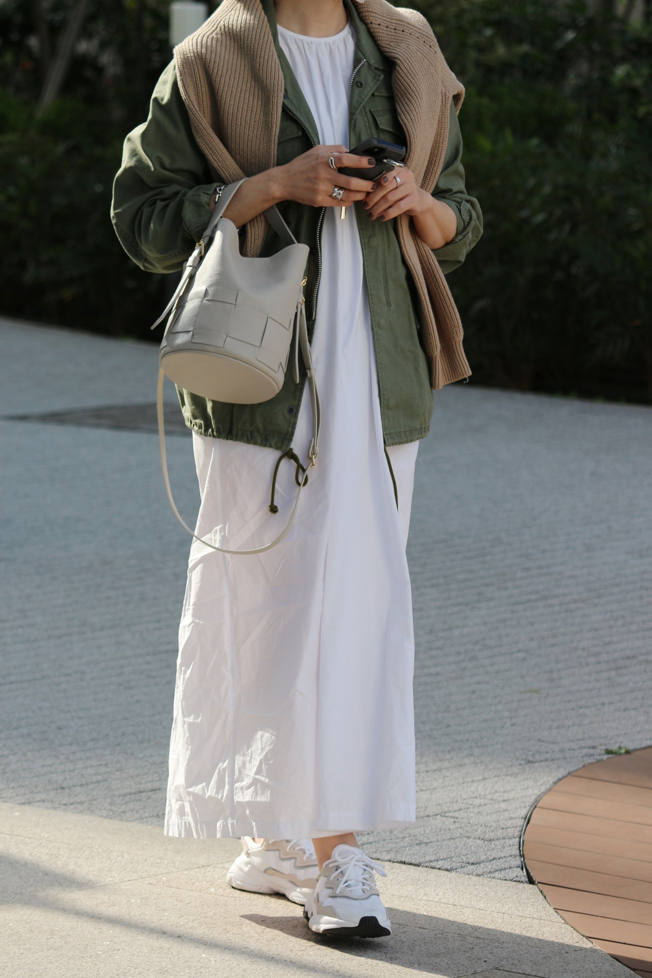 ディテールのあるデザインはベーシックな装いに合わせると