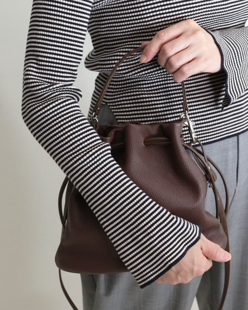 サッと持てるサイズ感で手持ち、肩掛け、斜め掛け、ショルダーとハンドルを外して巾着持ち