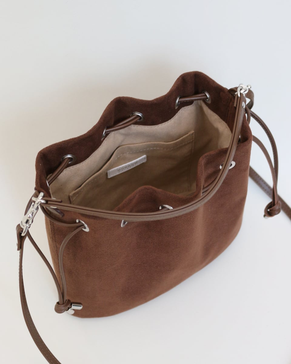 巾着タイプの開閉仕様を採用した事で、大きさを調整でき