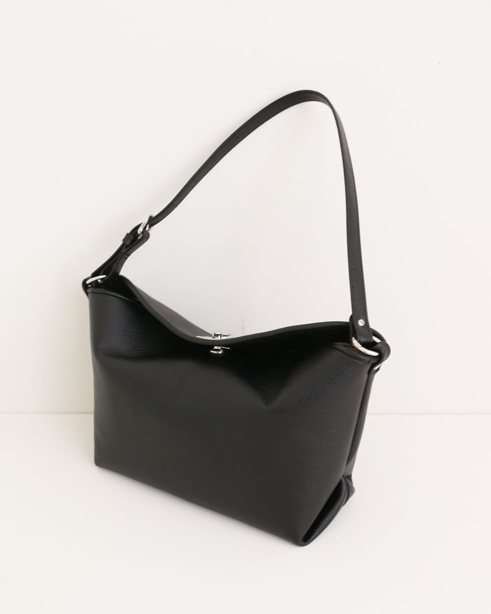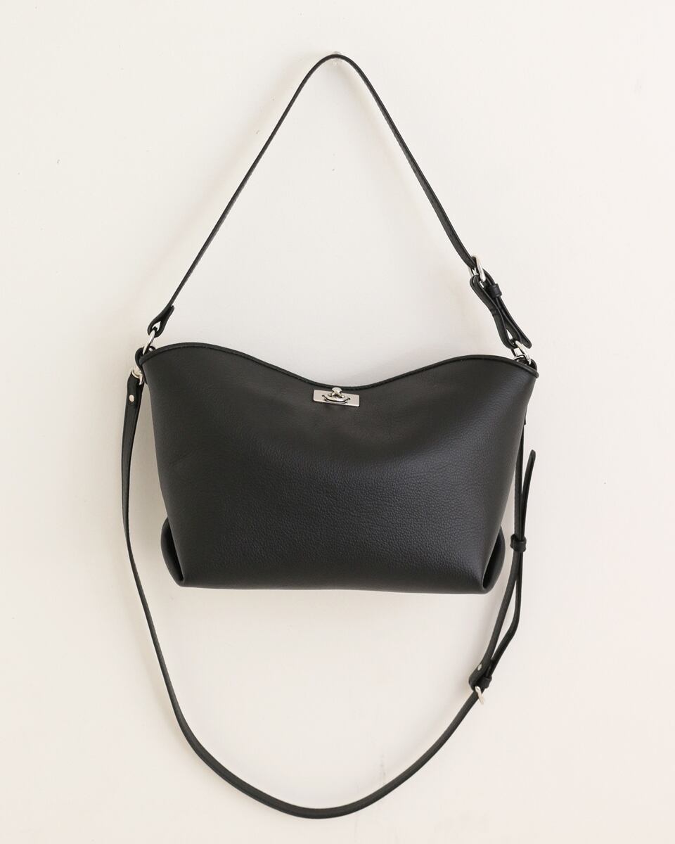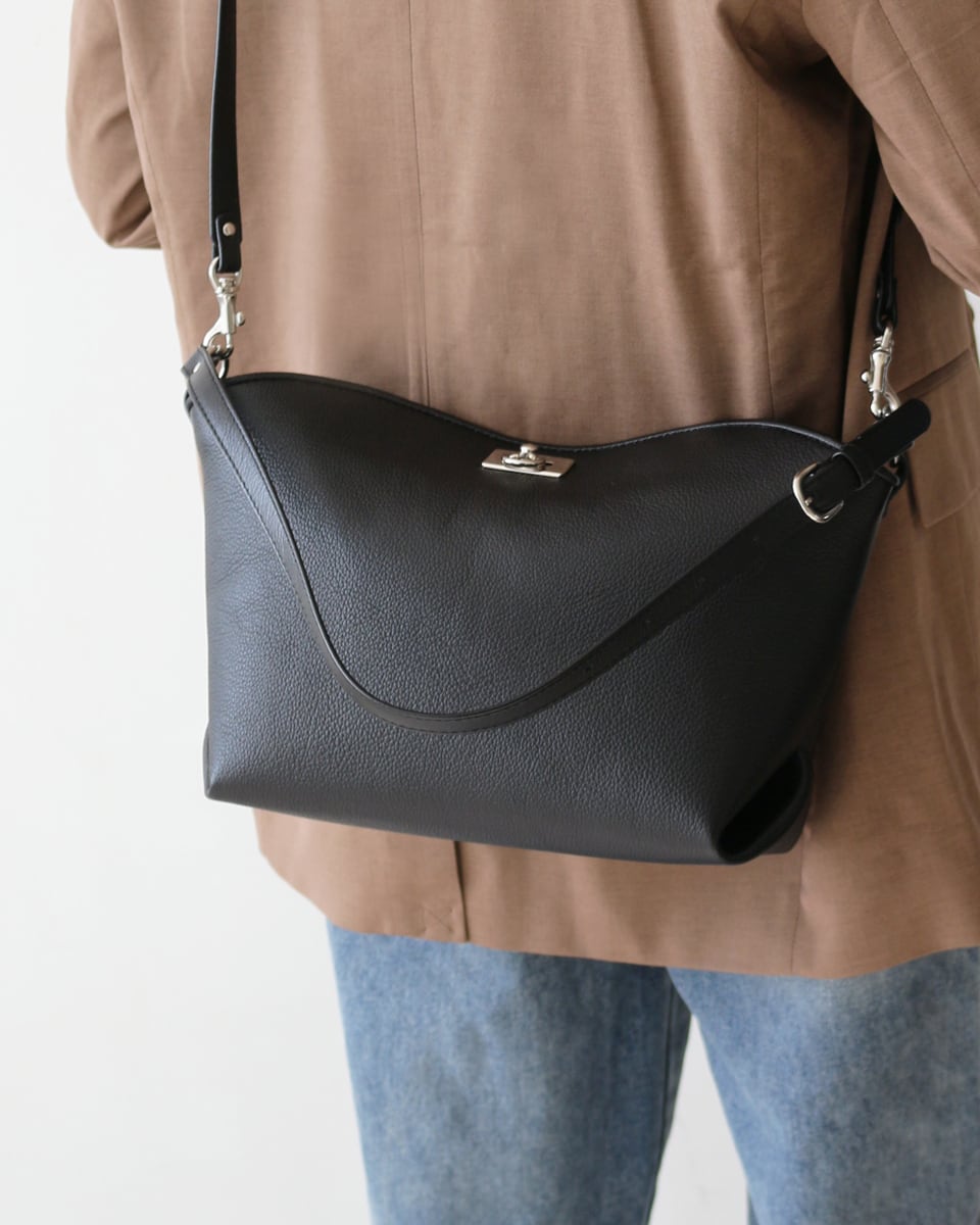 やわらかな曲線とポイントになるホックが特徴のワンショルダーバッグ。