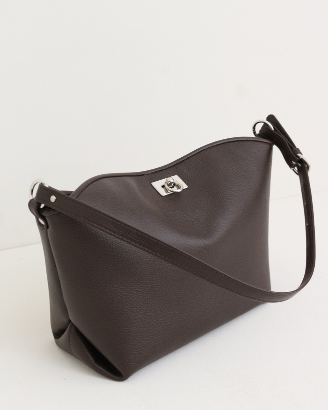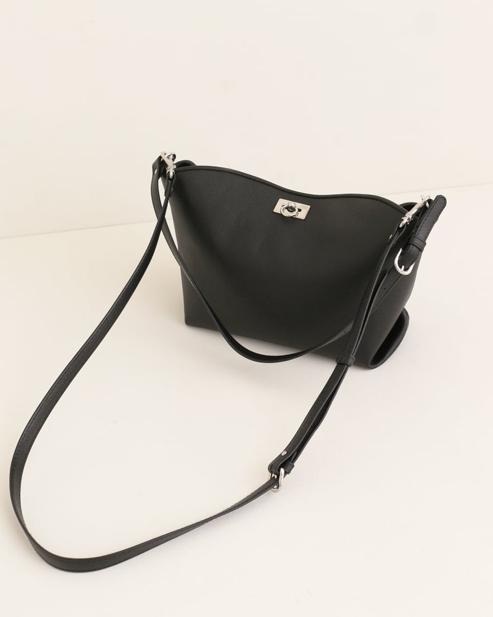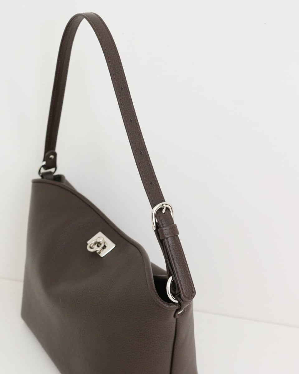 やわらかな曲線とポイントになるホックが特徴のワンショルダーバッグ。