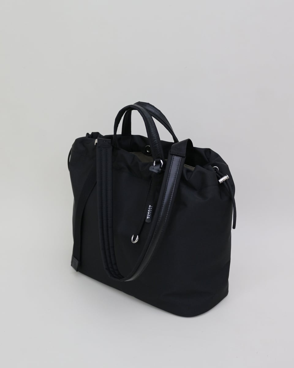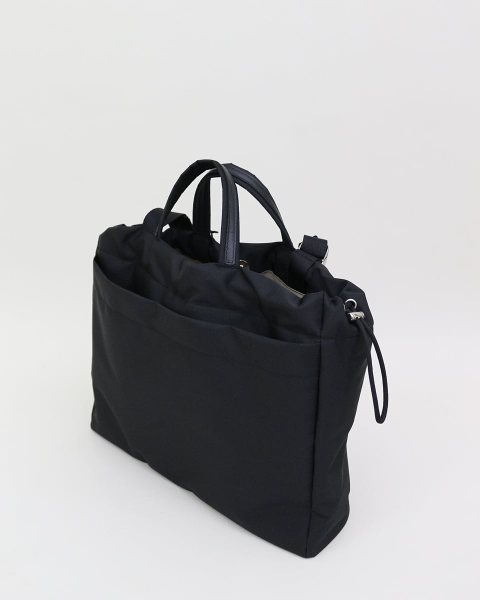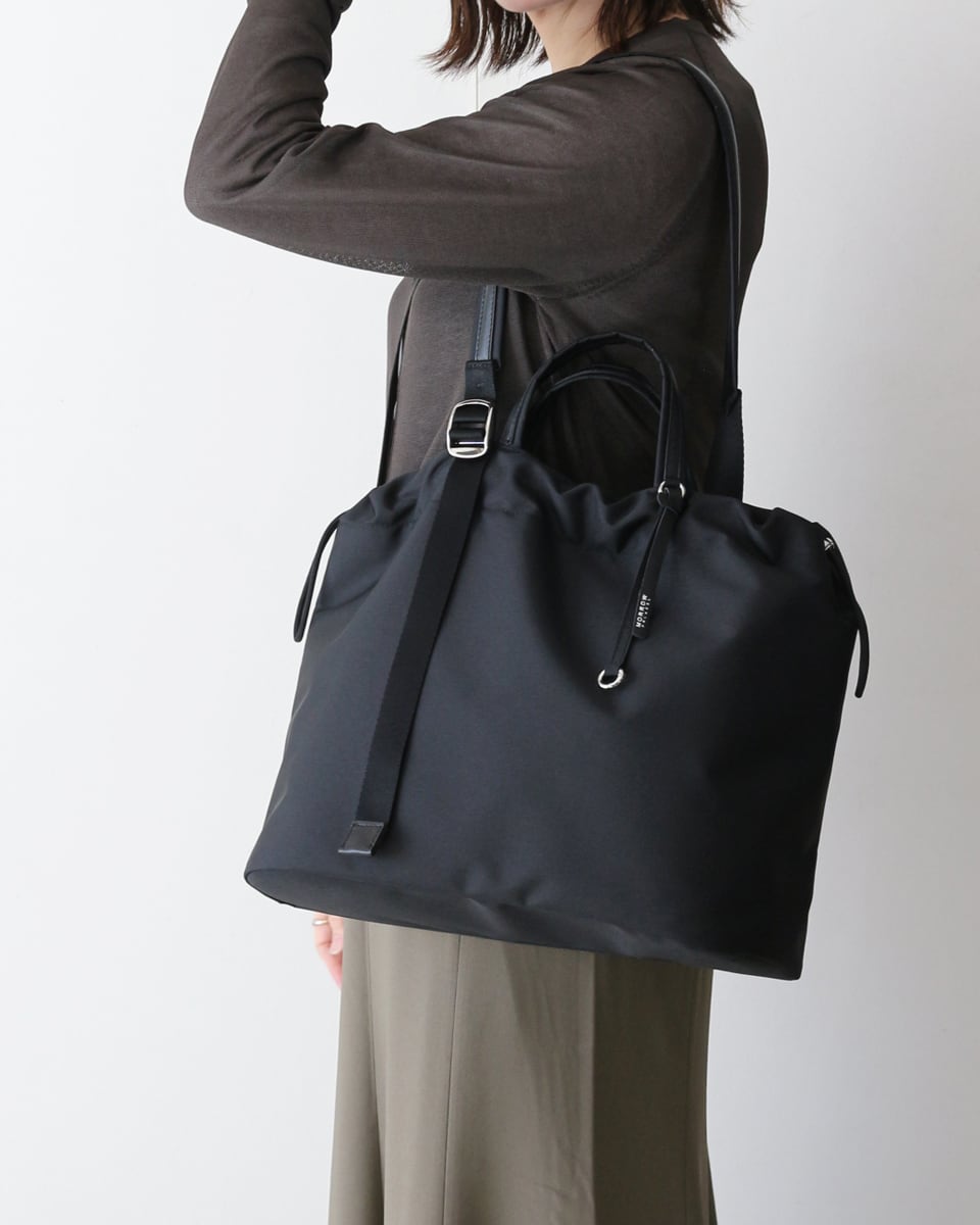 柔らかな巾着フォルムに、ノートPCやA4書類が収まる実用性をプラス。