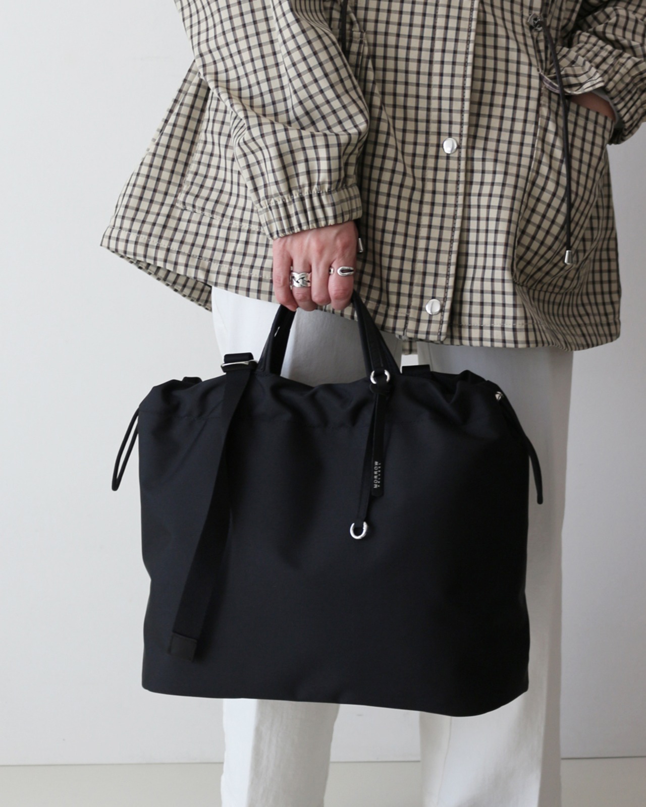 丸みのあるドローストリングデザインが、今っぽさと程よい抜け感を演出。